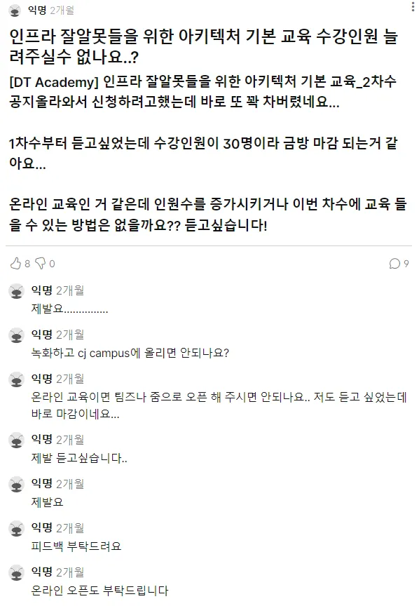 양질의 컨텐츠를 제공하기 위해 수강 인원이 정해져있었으나,