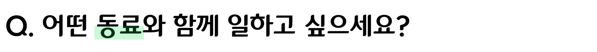 협업은 서로의 생각을 명확하게 전달하고, 이에 대한 서로의 피드백을 주고 받으며 이루어진다고 생각하거든요. 특히 의견을 존중하고 업무에 대한 건설적인 대화를 할 수 있는 동료면 좋겠습니다.