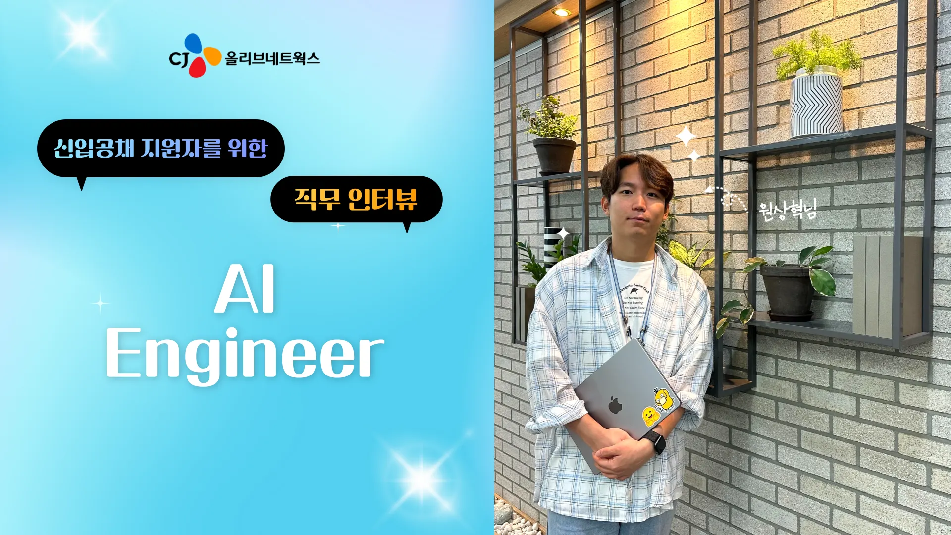 안녕하세요. CJ올리브네트웍스에 21년 하반기 신입사원으로 입사해, 올해로 3년차가 된 원상혁입니다. 저는 AI연구소에서 AI Engineer 로 언어 모델과 관련된 업무를 진행하고 있어요.