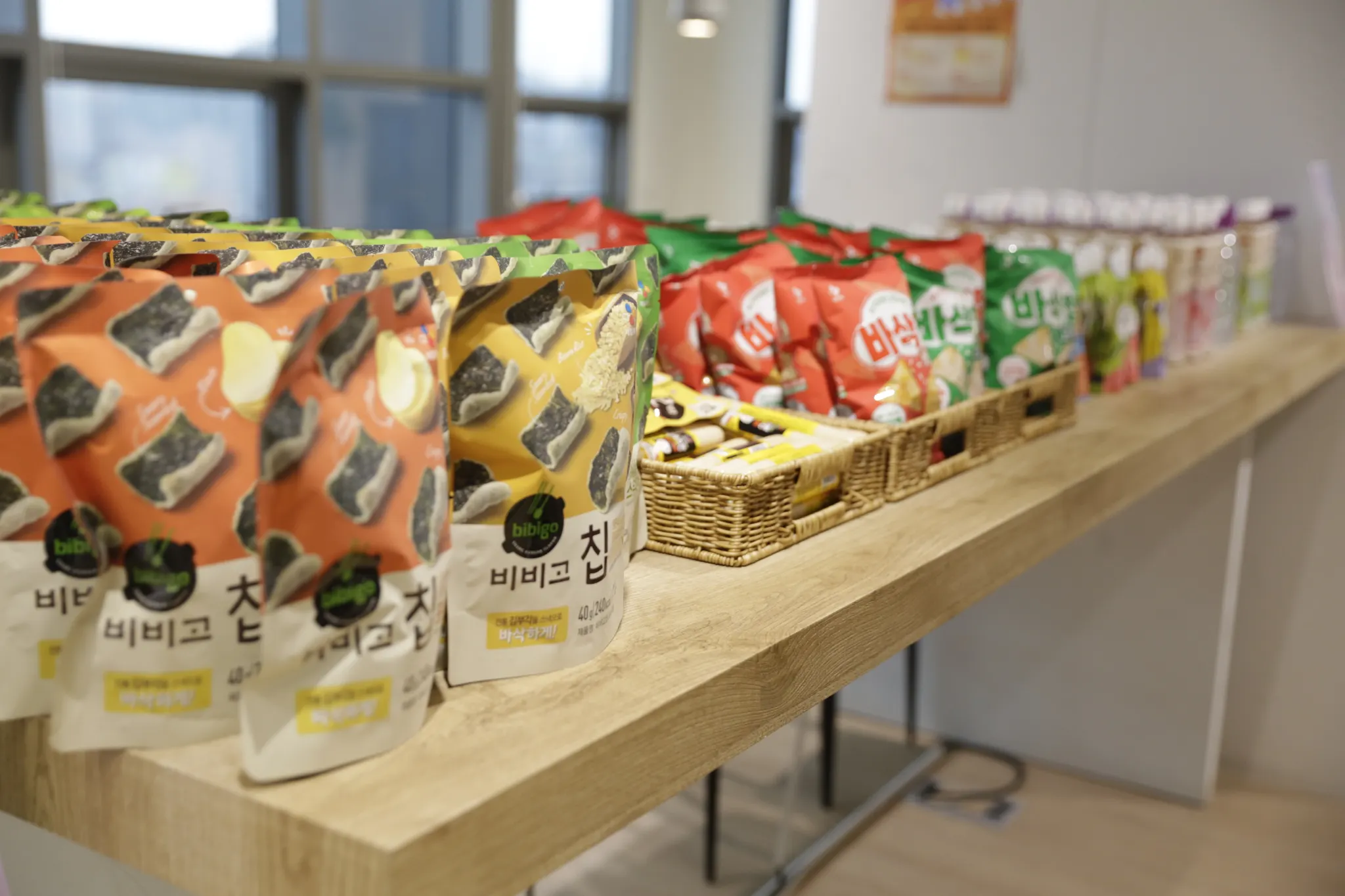 CJ의 다양한 맛을 자유롭게 즐길 수 있는 간식코너  도 준비했는데요,