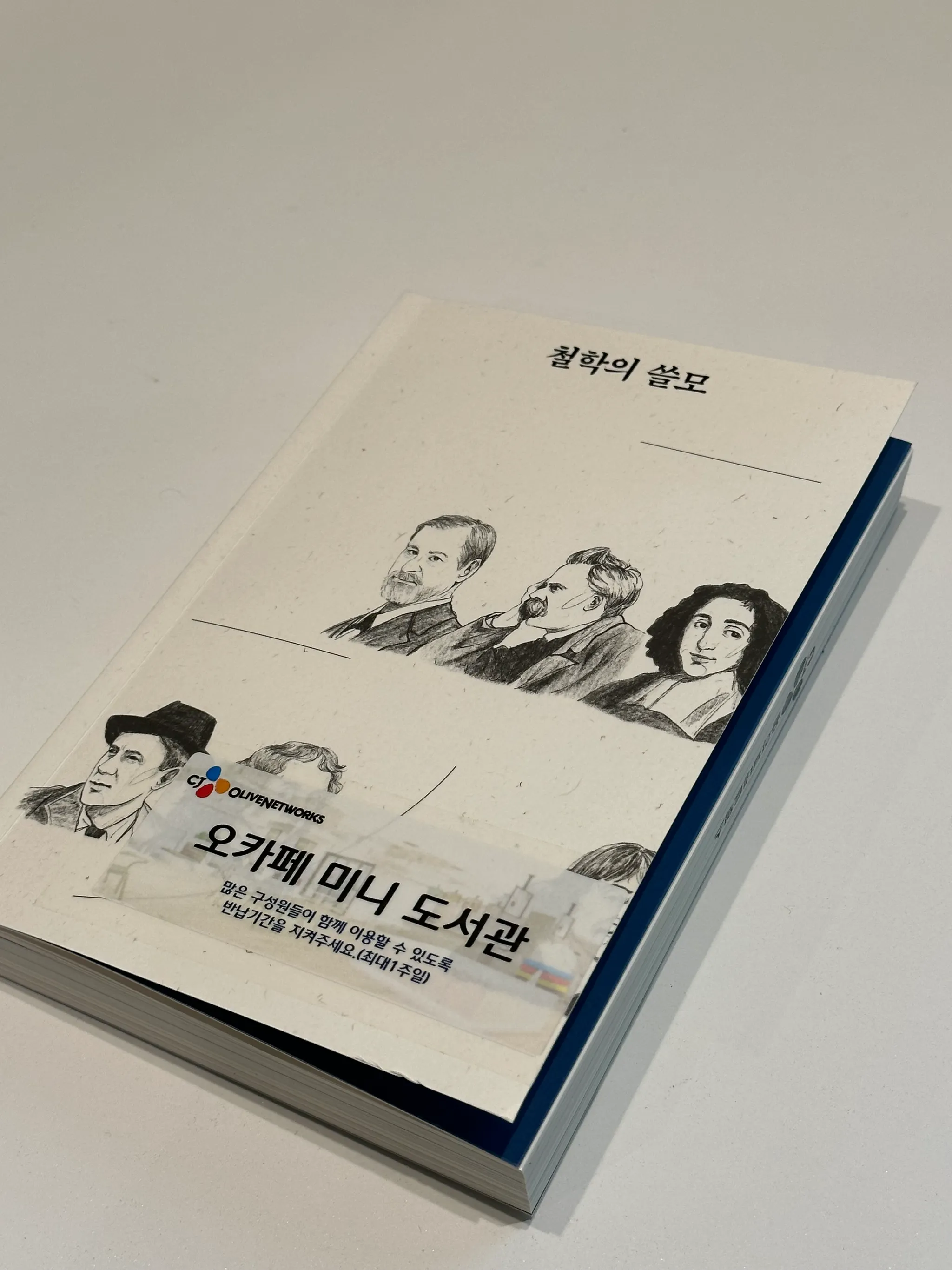 저는 혼자 독서하는 게 좋아요. 집에서 가져온 책을 읽을 때도 있고, 그렇지 않으면 오카페 미니도서관에서 이달의 책을 읽어보는 편이에요. 업무시간에는 모니터만 보니까, 쉴때는 이렇게 책 보는게 그렇게 좋더라구요.