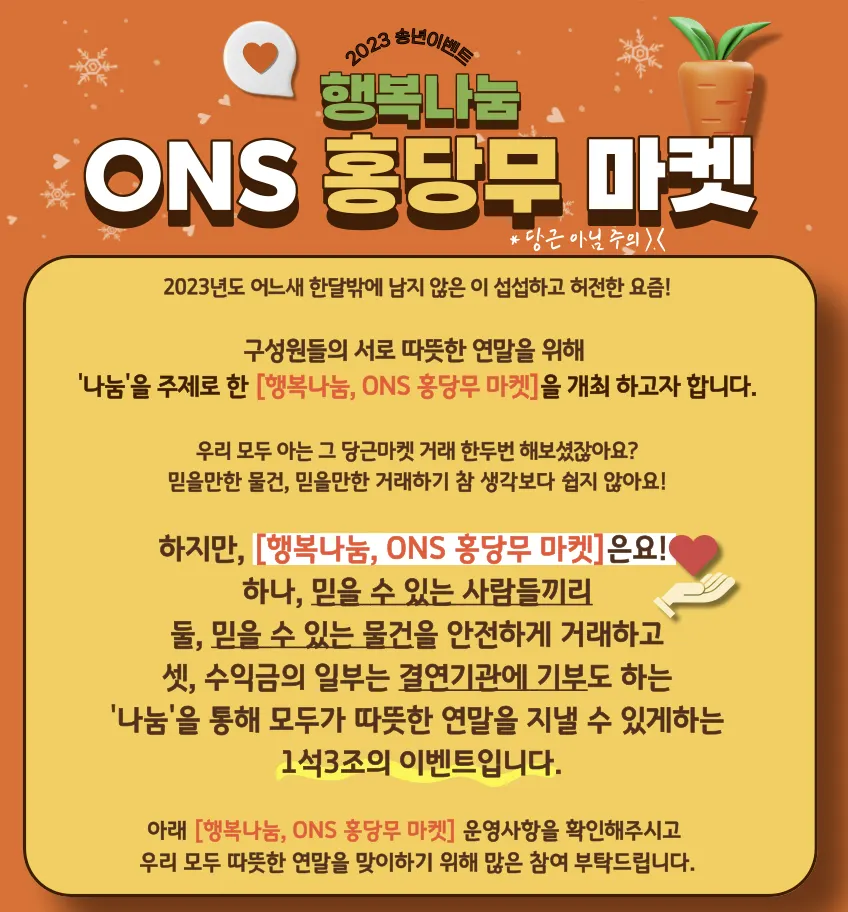 ‘나눔’을 주제로 한 [행복나눔, ONS 홍당무 마켓]을 개최했습니다.