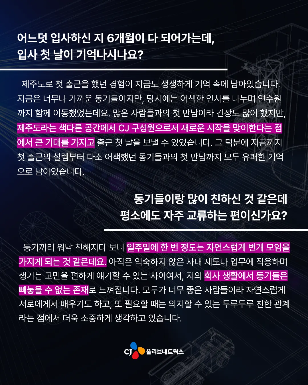 CJ 그룹의 신입사원으로 입사하시면