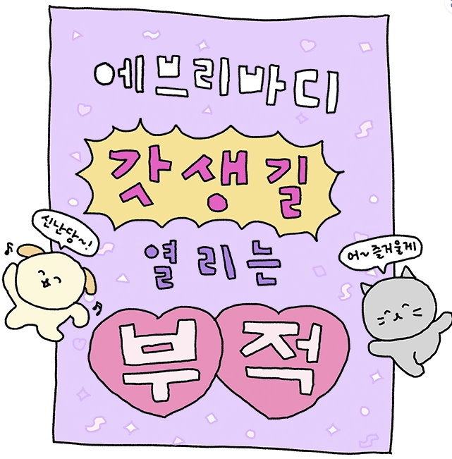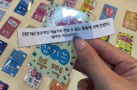 부적 안에 귀여운 스티커들과 예술 글귀가 들어있었어요