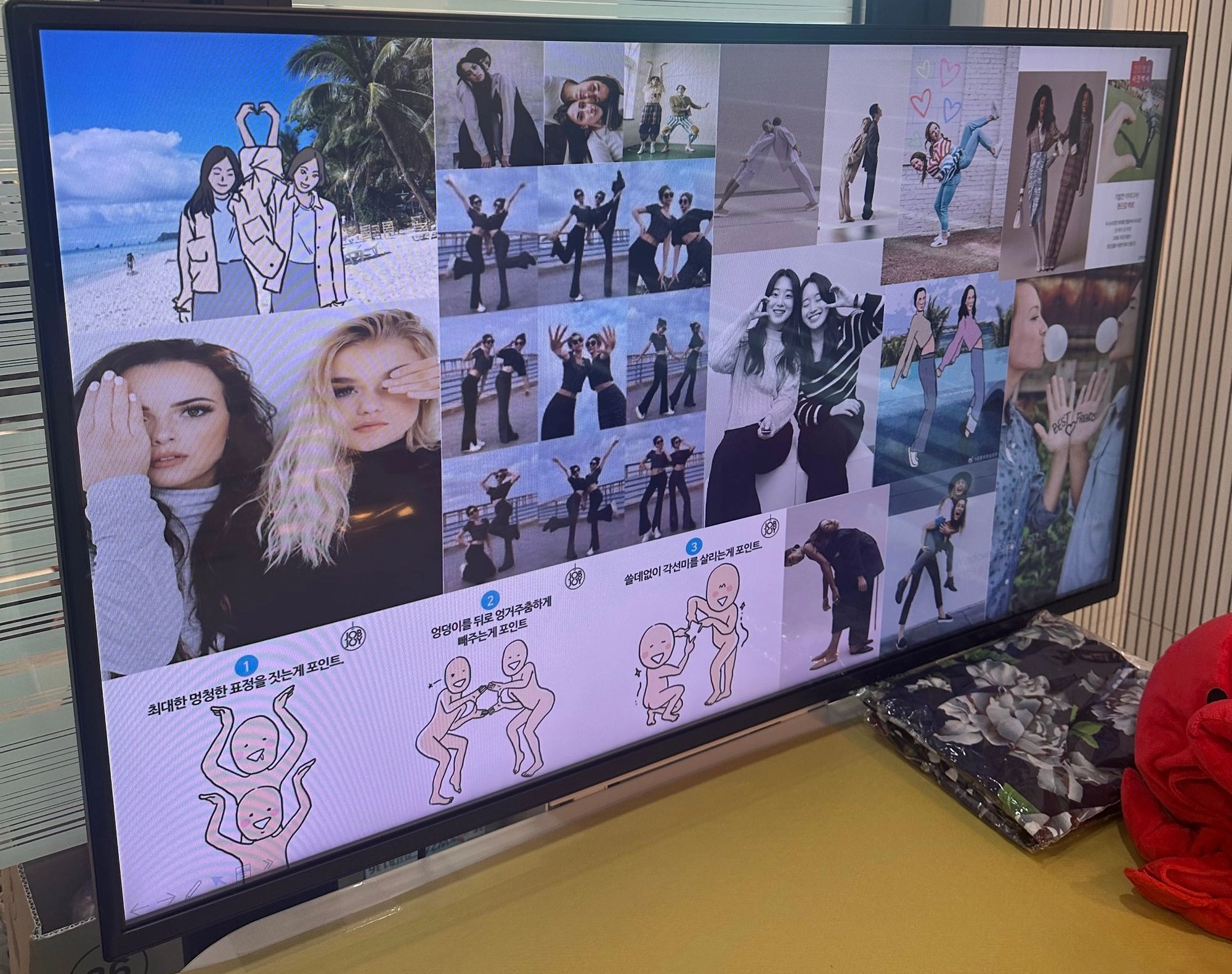 어떤 포즈로 찍을지 고민할 필요 없도록 스크린에 여러가지 포즈중 마음에 드는 포즈를 선택하여