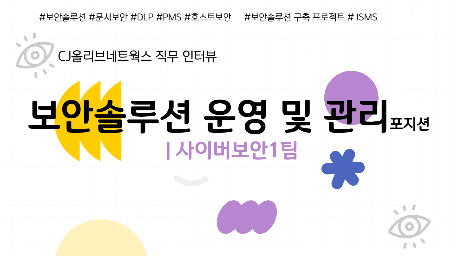 사이버보안1팀의 여러 업무 중 CJ그룹의 공통적인 보안솔루션과 각 계열사 그리고 해외 지사의 보안솔루션을 기획/구축하고 운영하는 업무로 생각하시면 돼요.